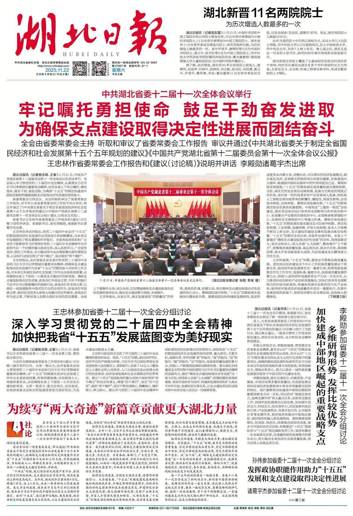 湖北日报11月22日